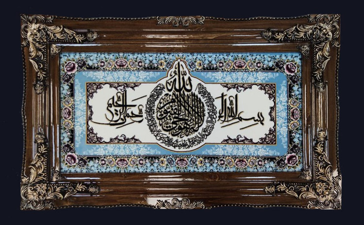 تابلو فرش ماشینی 1500شانه اصل قاب چوبی (اصل )کیفیت عالی 50در100؛ طرح آیه