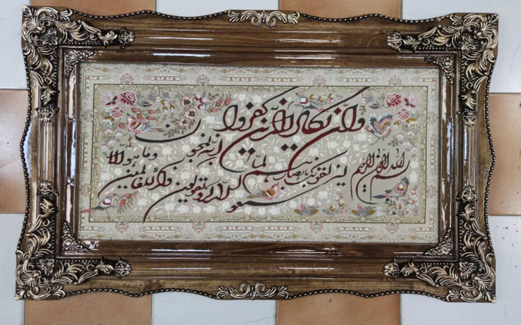 این تابلو فرش 1500چاپی است؛ کیفیت عالی دارد.اندازه خود فرش بدون قاب 50 در 100 سانتی متر است و با قاب 75 در 125 سانتی متر است .
