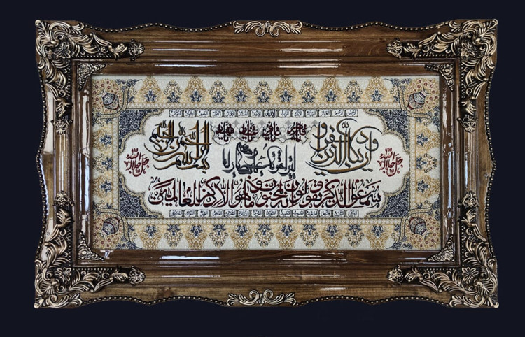 تابلو فرش ماشینی 1500شانه ابریشم قاب چوبی (اصل )کیفیت عالی 50در100