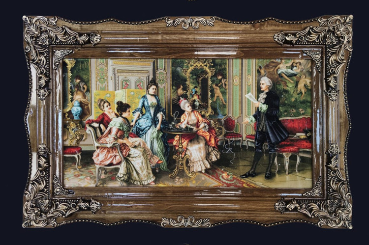 تابلو فرش ماشینی 1200شانه ابریشم قاب چوبی (اصل )کیفیت عالی 50در100